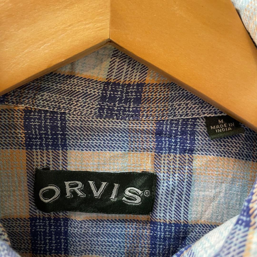 【商品説明】 ORVISのMサイズ、青とベージュのチェック柄ネルシャツ。