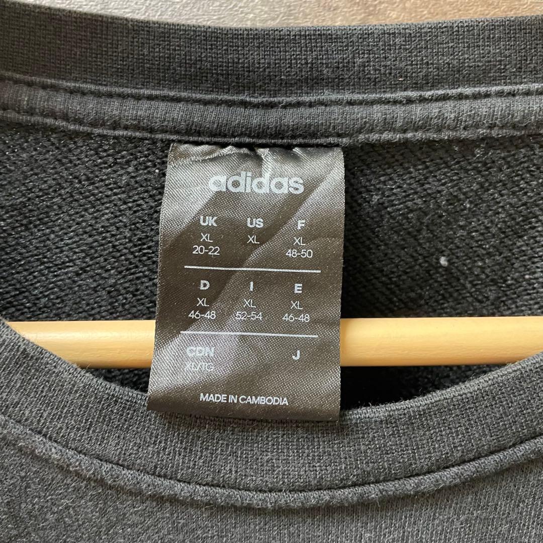 【商品説明】 adidasのロゴが特徴的なブラックのトレーナー、XLサイズです。