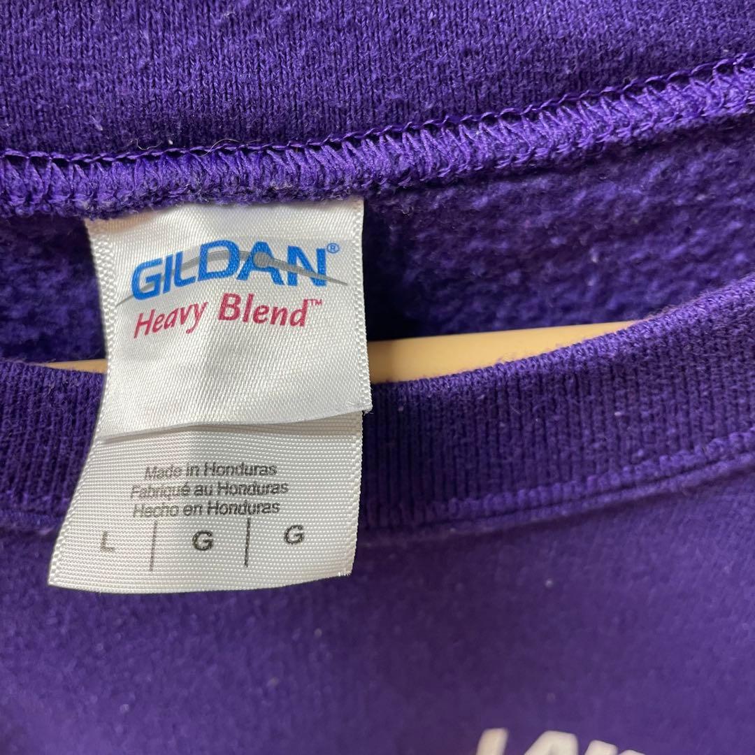 【商品説明】 LAKE MILLS BULLDOGSのプリントが施されたGILDAN製の紫色トレーナー。