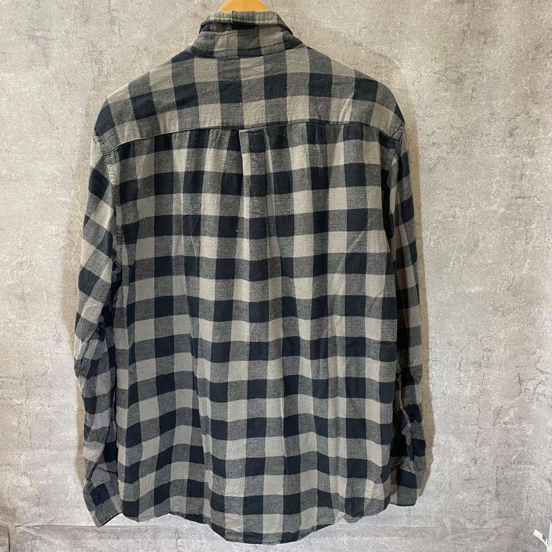 Croft&Barrow グレー/ブラックチェック 長袖ネルシャツ L