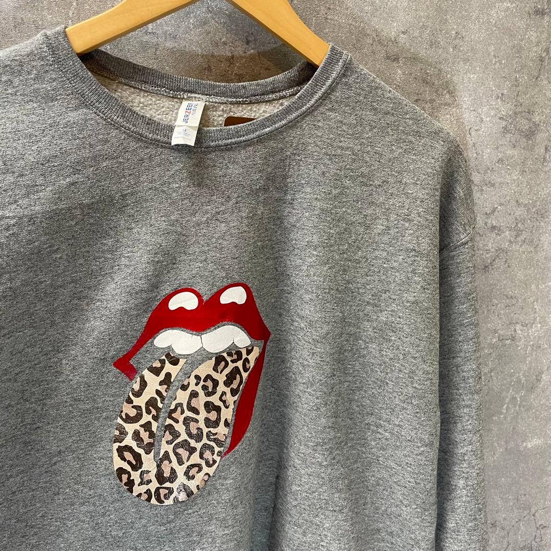 レオパード柄の舌デザインが特徴的なグレーのスウェット。