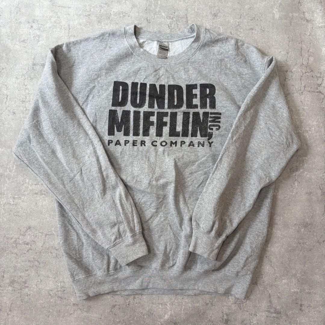 【商品説明】 GILDAN製のグレーのトレーナー、DUNDER MIFFLINのロゴ入り。
