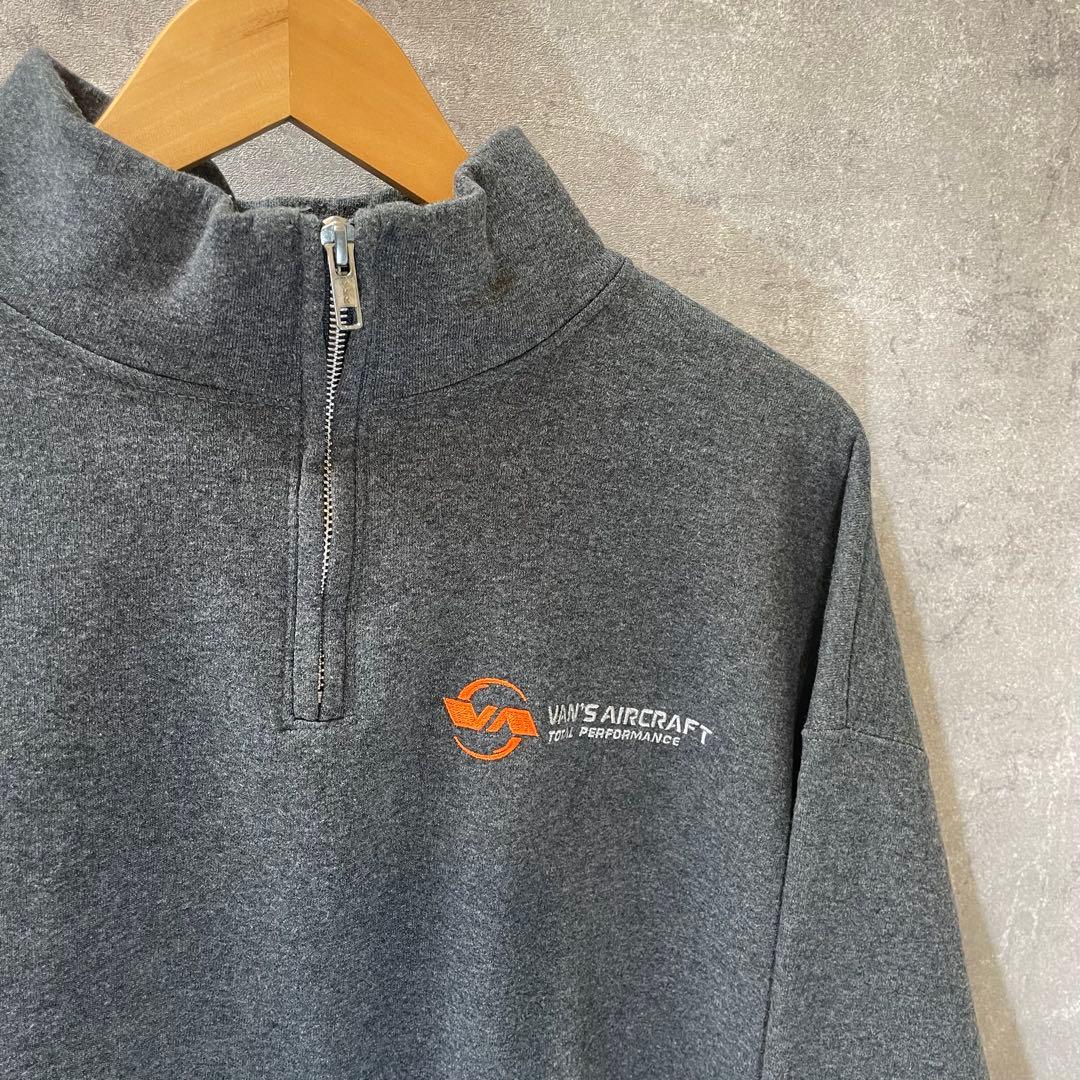 グレーのハーフジップスウェット、Vans Aircraftのロゴ入り。