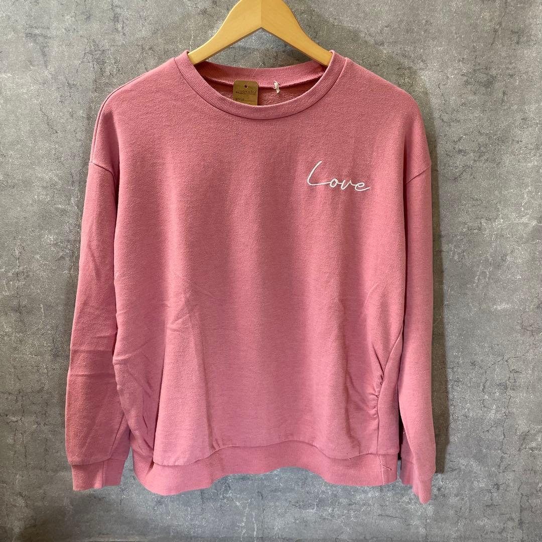 ピンクのスウェットに「Love」の刺繍が施されたデザイン。