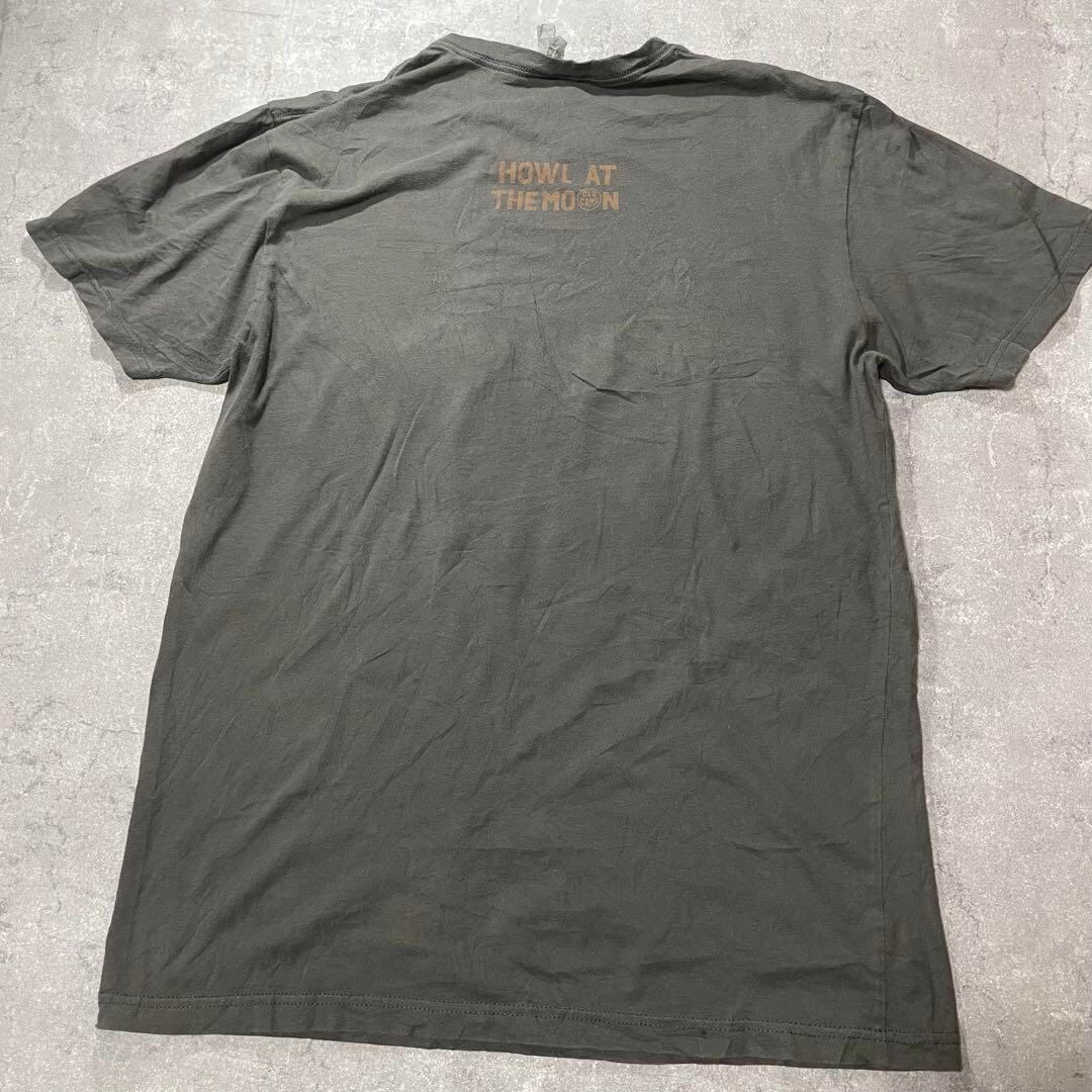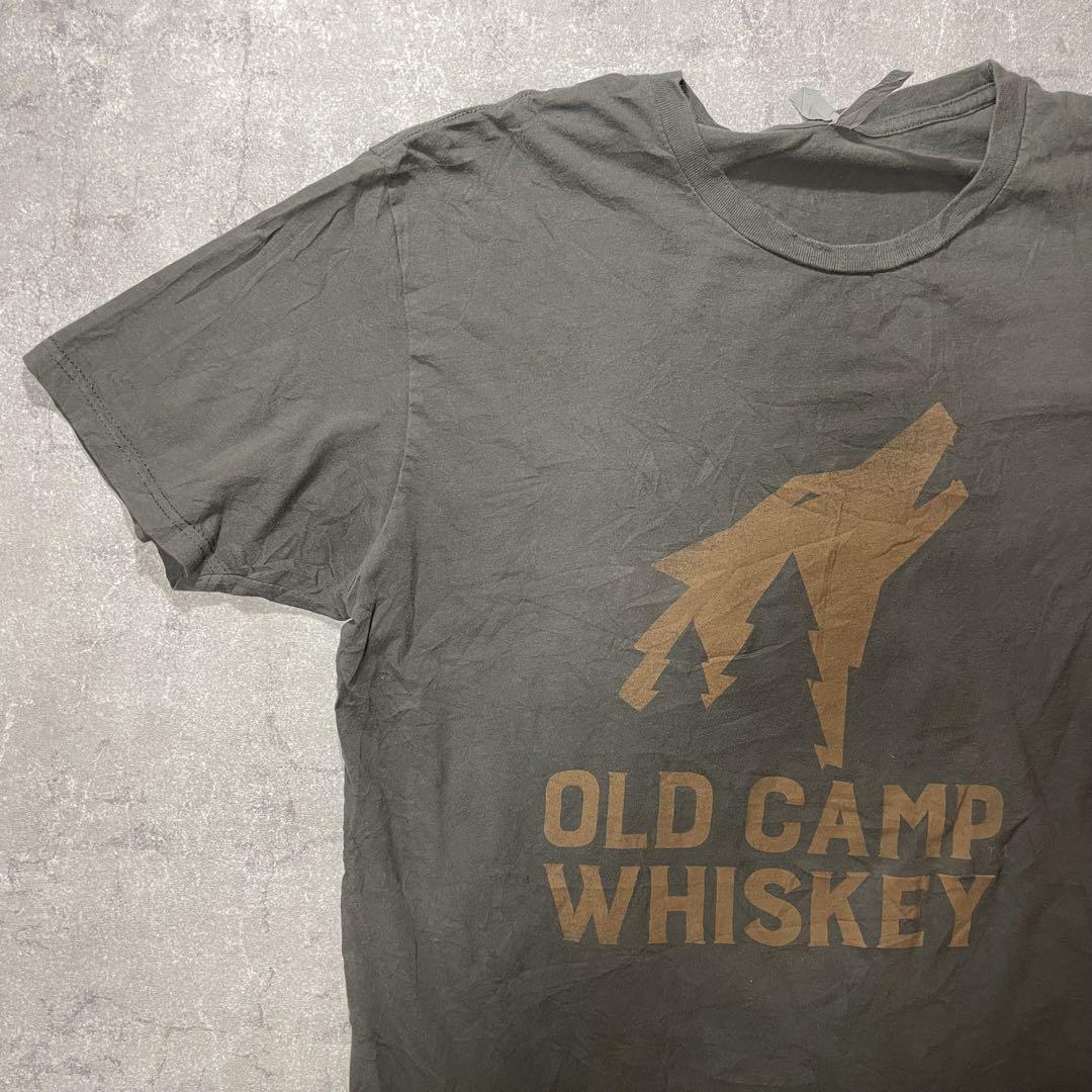 グレーのOld Camp Whiskey Tシャツ、Lサイズ、プリントロゴデザイン。