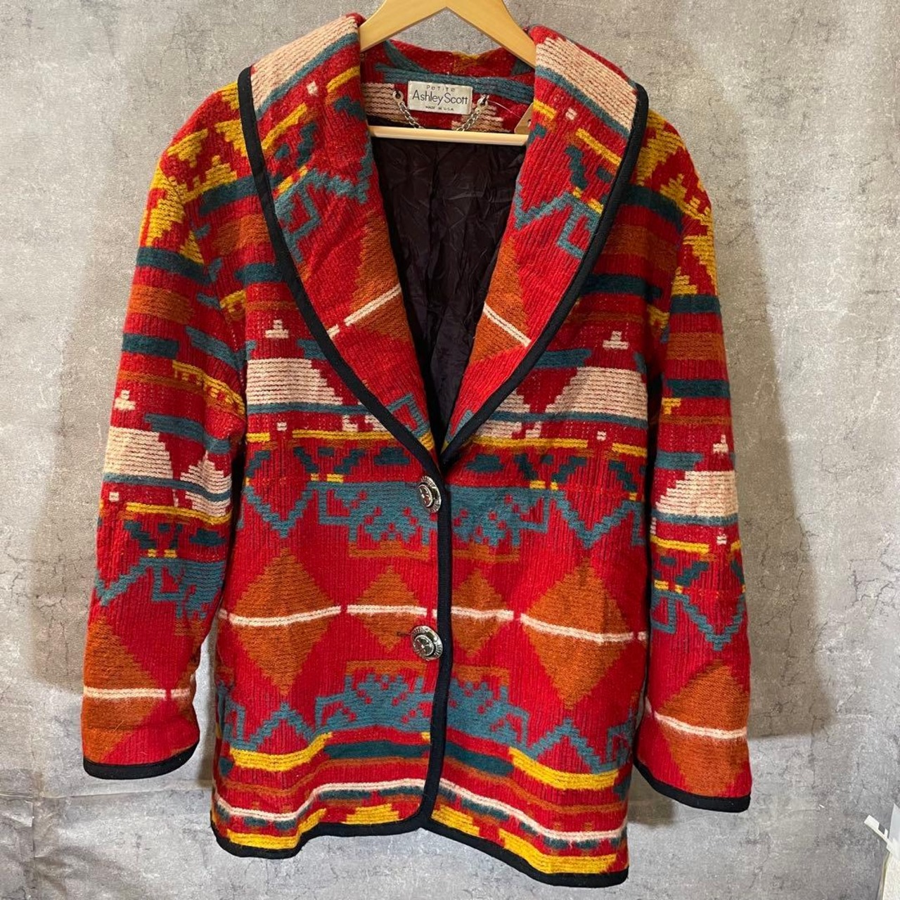 アメリカ製、多色の幾何学模様が特徴のAshley Scottのジャケット。