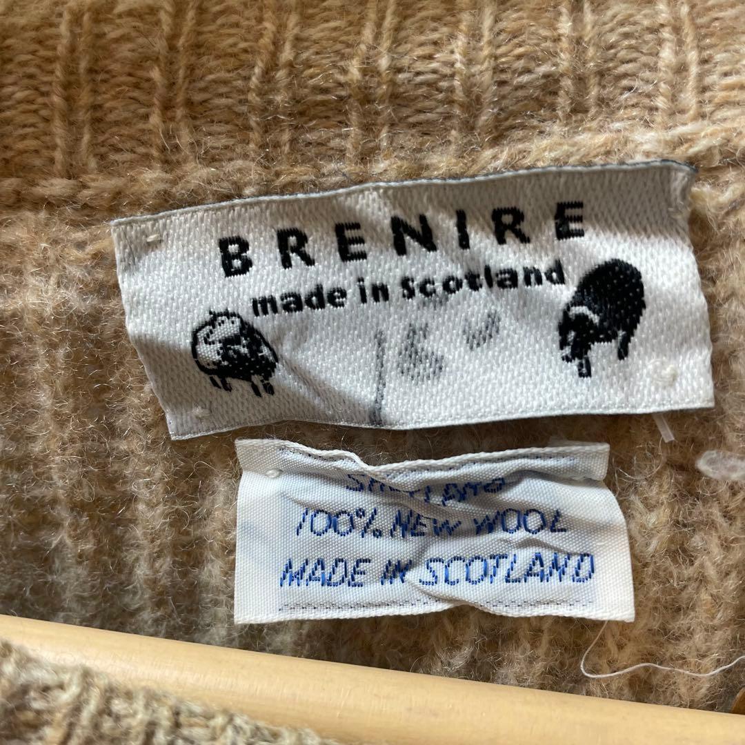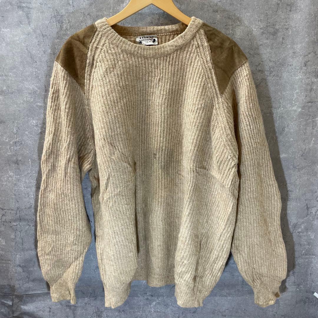 スコットランド製 BRENIRE ニットセーター レザーパッチ ベージュ XL