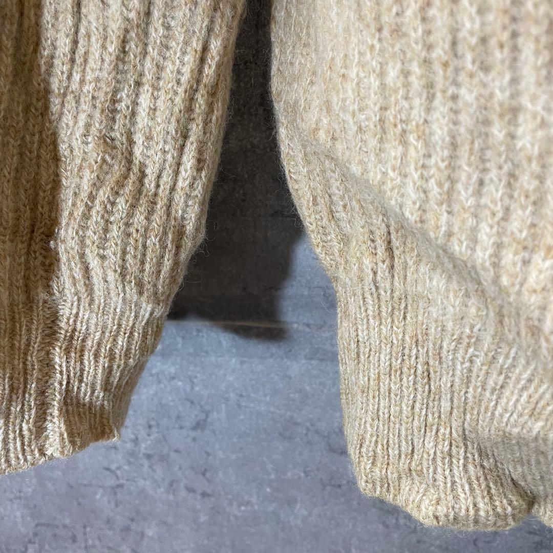 スコットランド製の100%ウールニットセーター、ベージュのラグランデザイン。