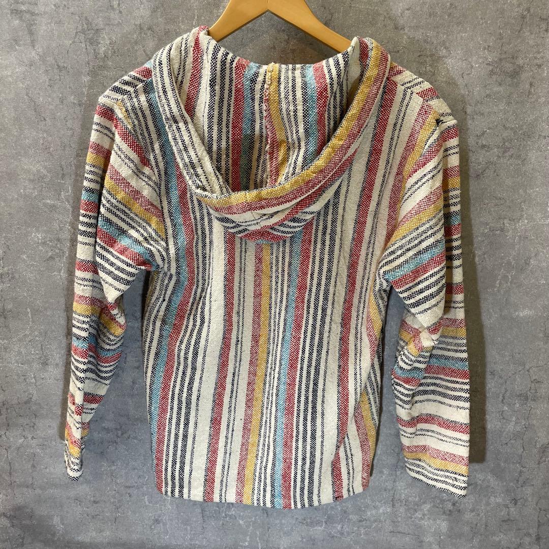 ストライプ柄のフード付きメキシカンパーカー、X-SMALLサイズ。