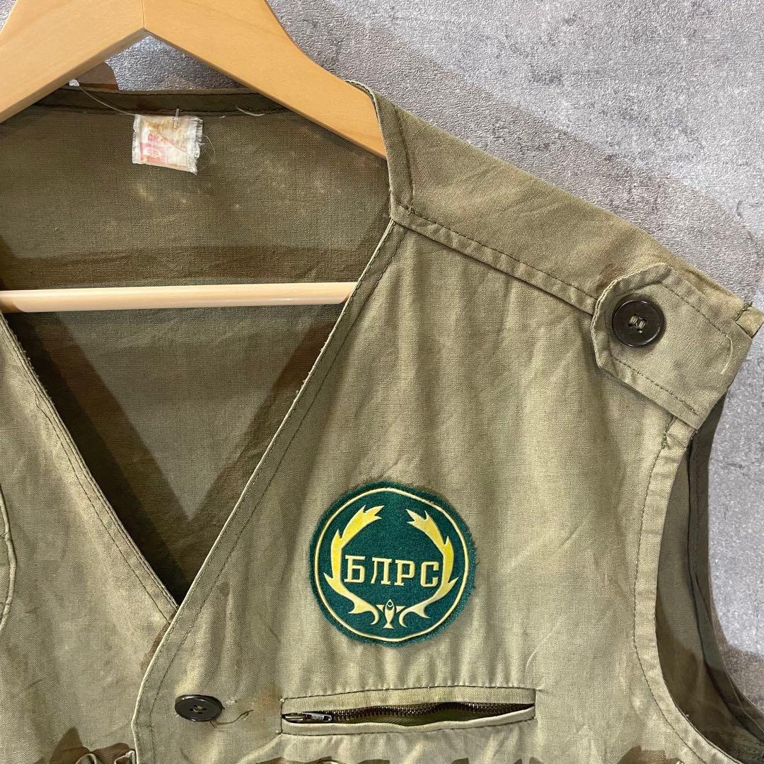 ビンテージハンティングオリーブグリーンベスト、БЛПСの刺繍付き。