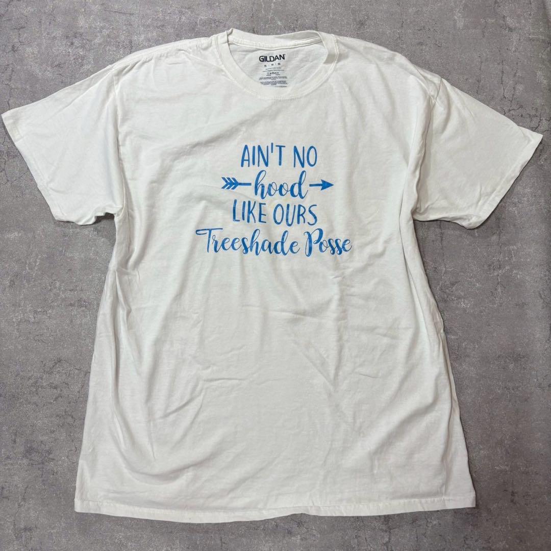 US古着☆GILDAN ホワイト Tシャツ Ain't No Hood XL