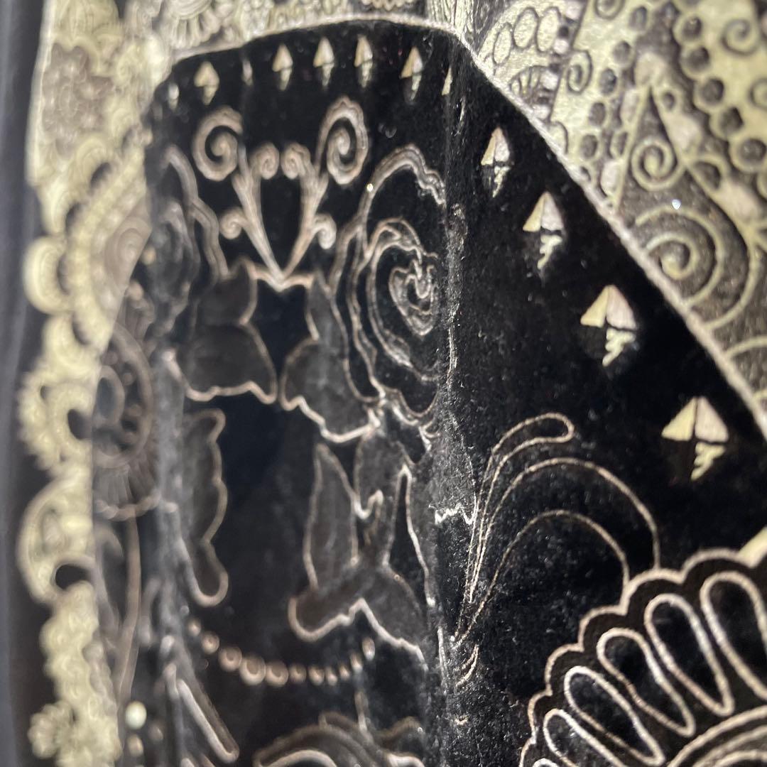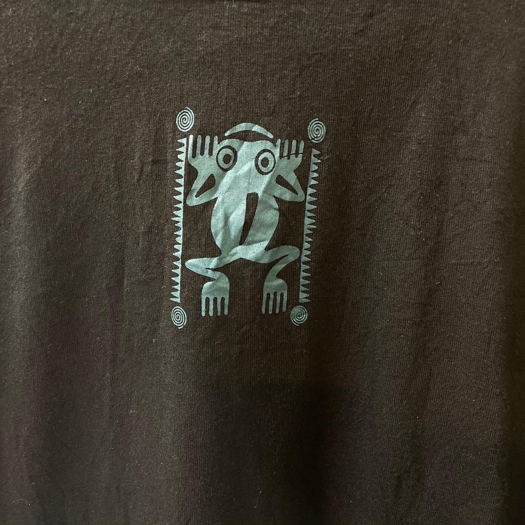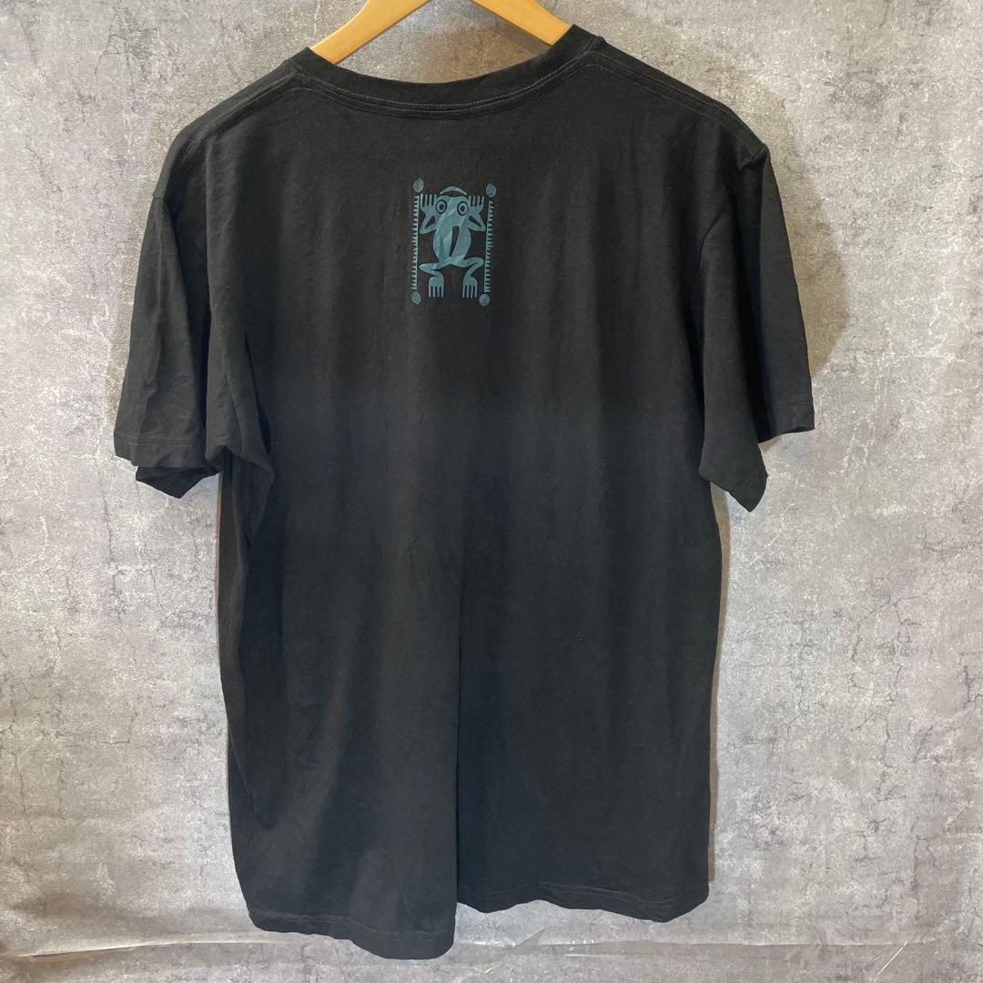 90s 海外古着 スカルベロアプリント ブラックTシャツ サイズL