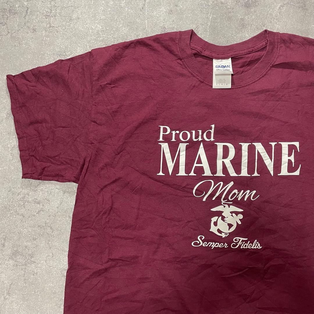 US古着 Proud Marine Mom Tシャツ L バーガンディ