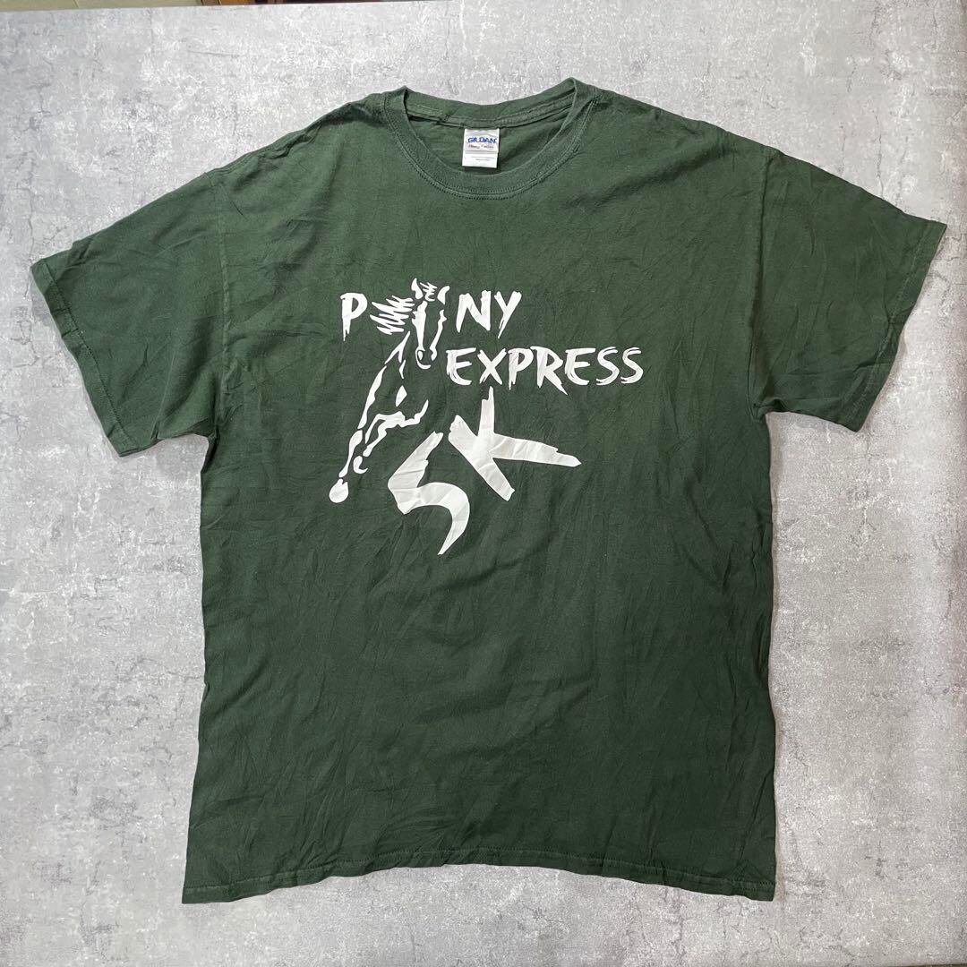 US古着☆ギルダン PONY EXPRESS 5K Tシャツ オリーブグリーン L